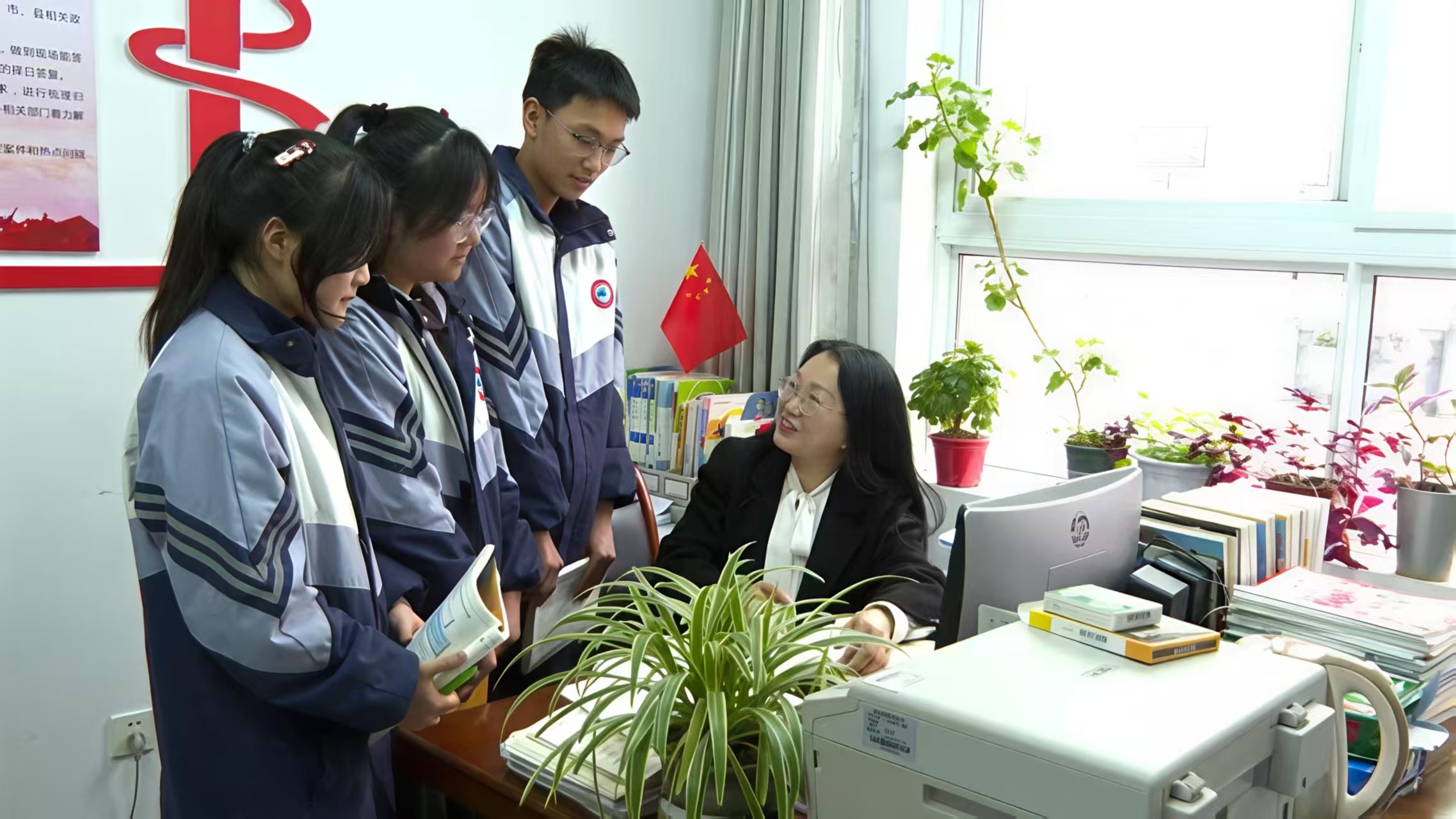 程文嬌在辦公室為學生解答問題 張榮榮 攝