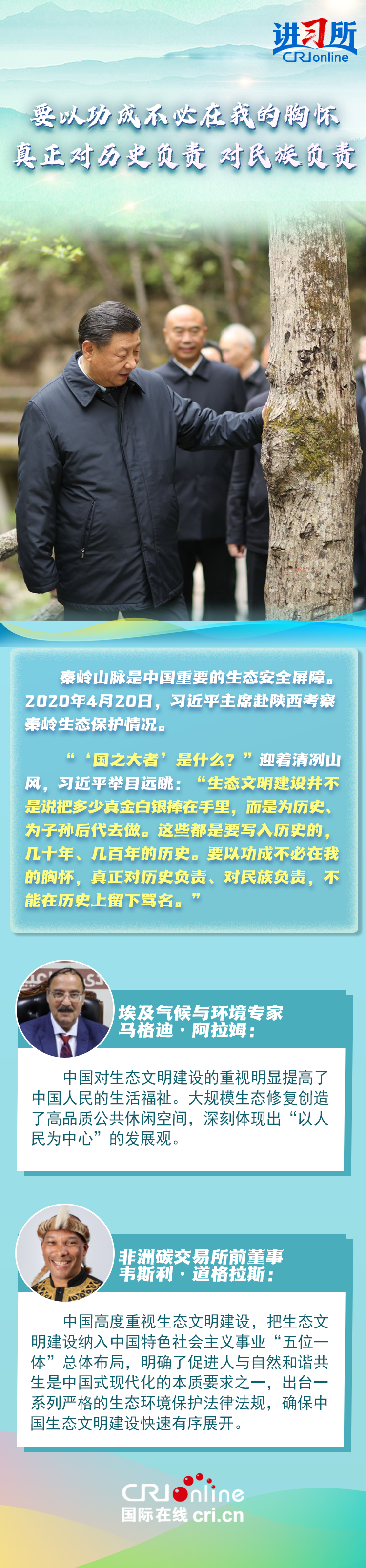 中共十八大以來(lái),中國(guó)森林面積和蓄積量持續(xù)“雙增長(zhǎng)”,荒漠化和沙化土地面積持續(xù)“雙縮減”,是全球增綠最多最快的國(guó)家。習(xí)近平主席始終身體力行:在北京連續(xù)14年參加首都義務(wù)植樹(shù)活動(dòng),在甘肅與林場(chǎng)職工一起進(jìn)行“草方格壓沙”作業(yè),在陜西親自“驗(yàn)收”秦嶺生態(tài)保護(hù)……
