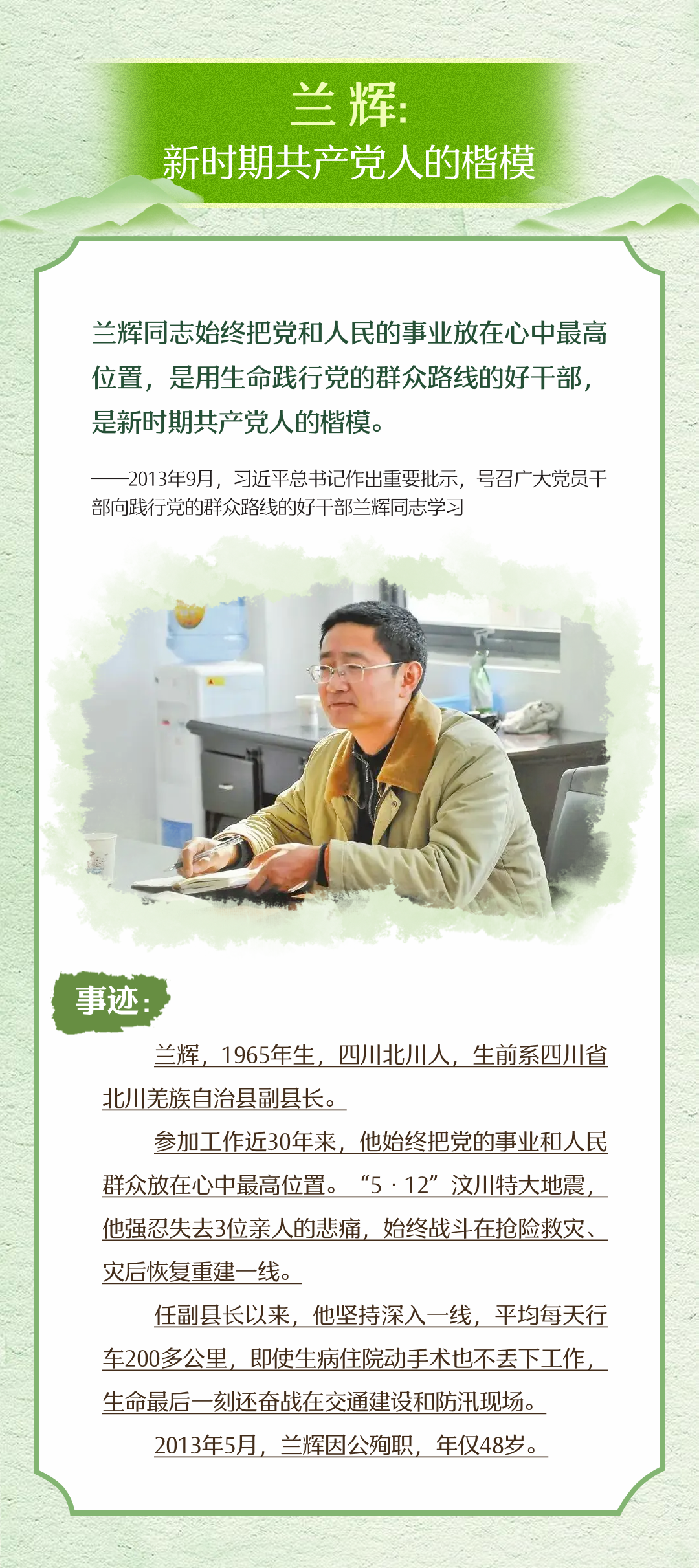 “天地英雄氣,千秋尚凜然?!绷暯娇倳浿赋?,對一切為國家、為民族、為和平付出寶貴生命的人們,不管時代怎樣變化,我們都要永遠銘記他們的犧牲和奉獻。清明節(jié),讓我們重溫習近平總書記緬懷革命先烈以及和平年代英雄們的深情話語,一起學習英烈事跡,賡續(xù)精神血脈,凝聚前行力量。