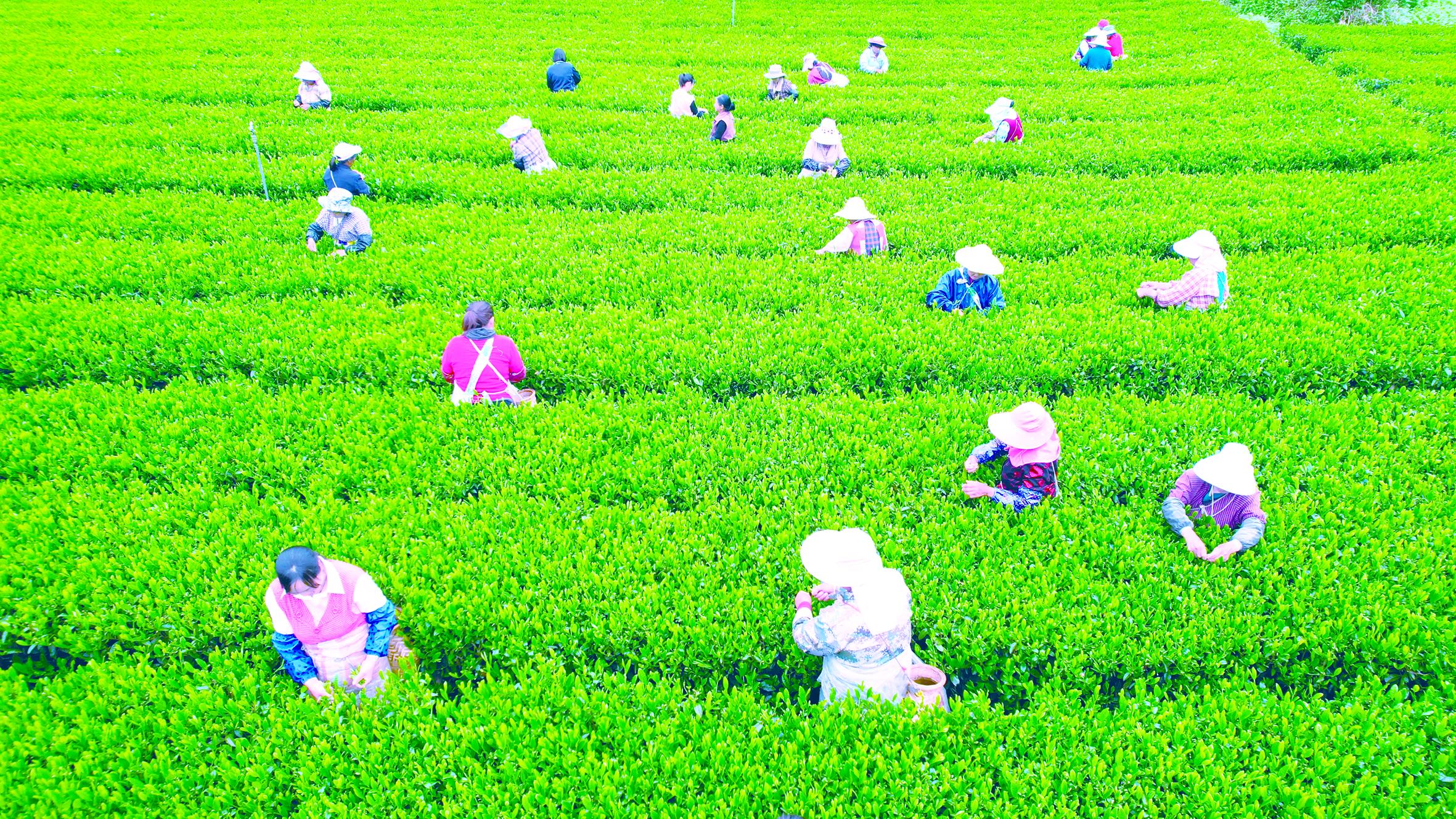 近日,在紫陽(yáng)縣煥古鎮(zhèn)春堰村茶園基地,茶農(nóng)正在采摘春茶鮮葉。儲(chǔ)茂銀 攝